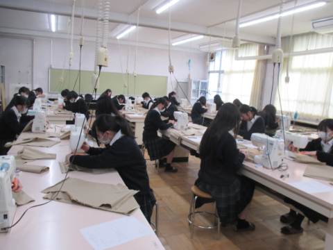 12月9日(火)放課後に生活デザイン科1年生が被服製作技術検定2級の実技試験に取り組みました。